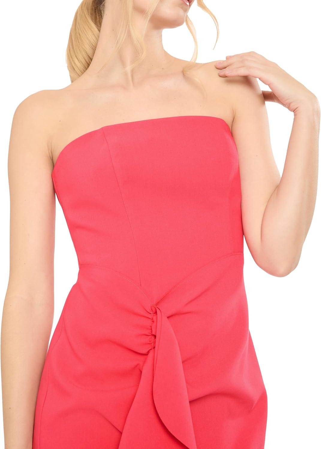 The Frida dress is a simple strapless midi dress with a flattering gather and ruffle.